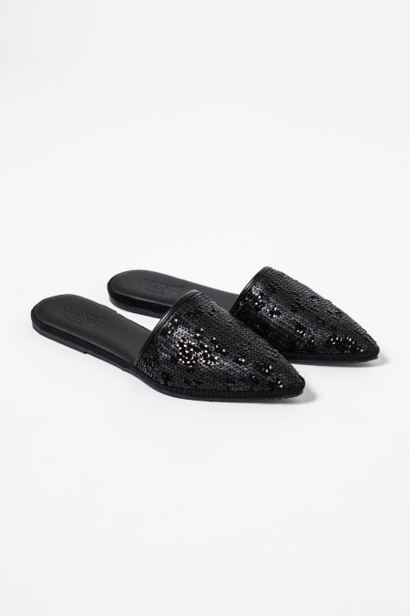 Mule in pelle e tessuto sequins