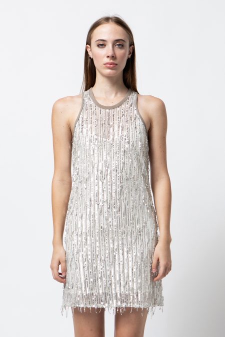 Abito in tessuto paillettes off-white