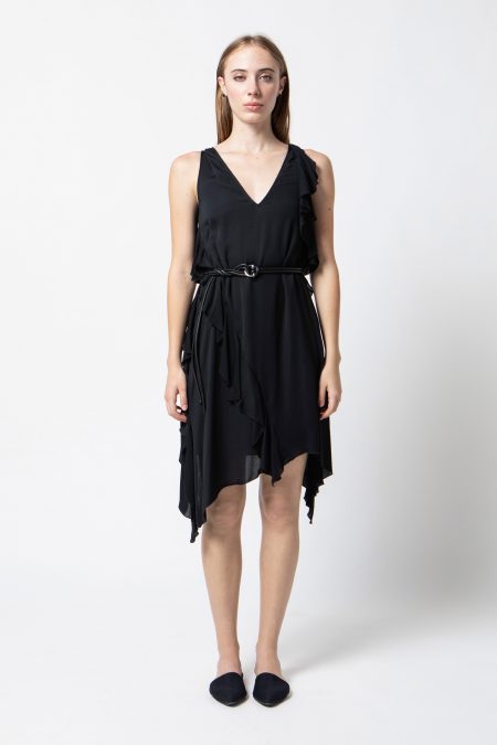 Abito in georgette di seta con rouches