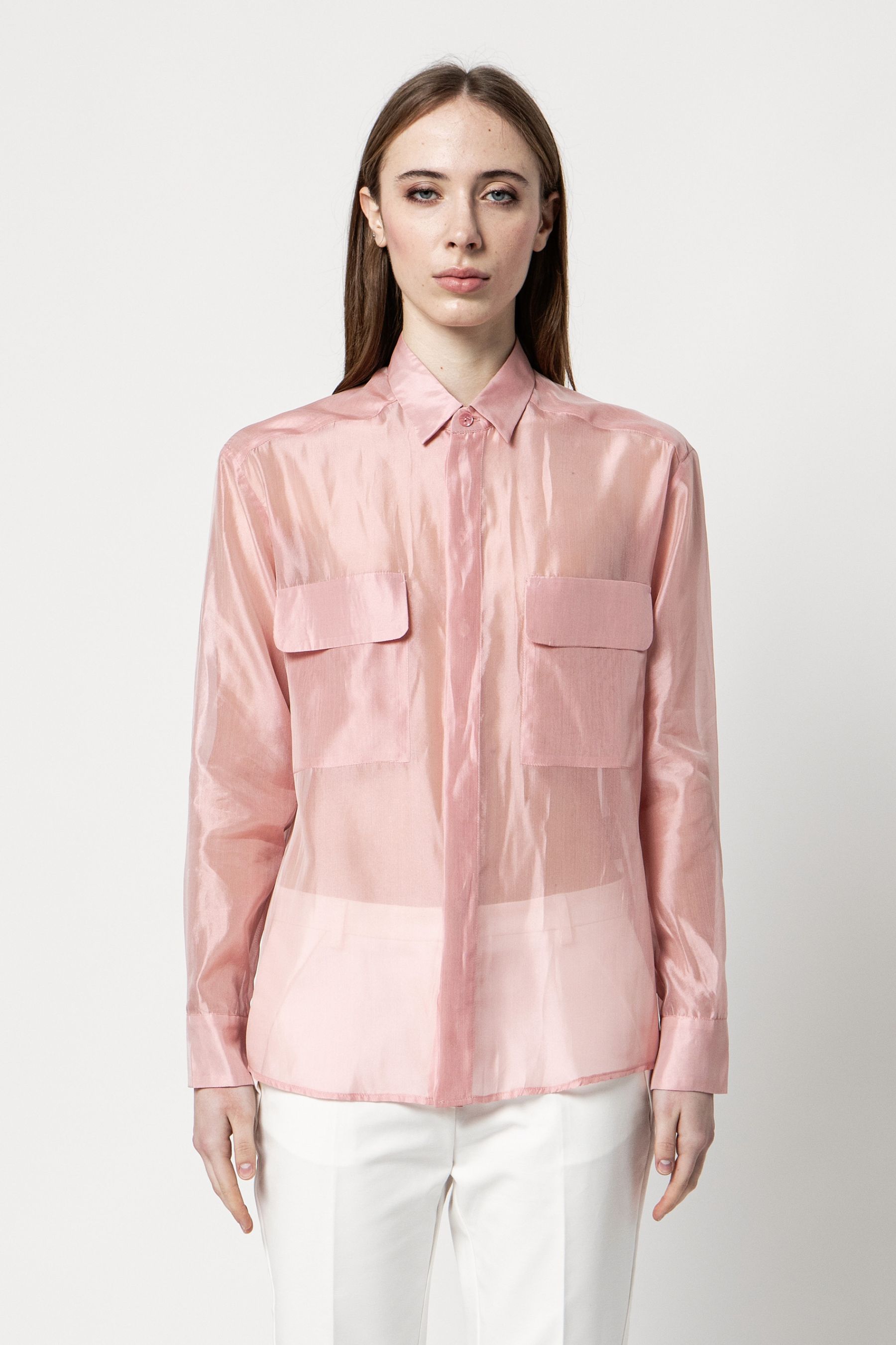 - Camicia in organza di seta leggera e trasparente