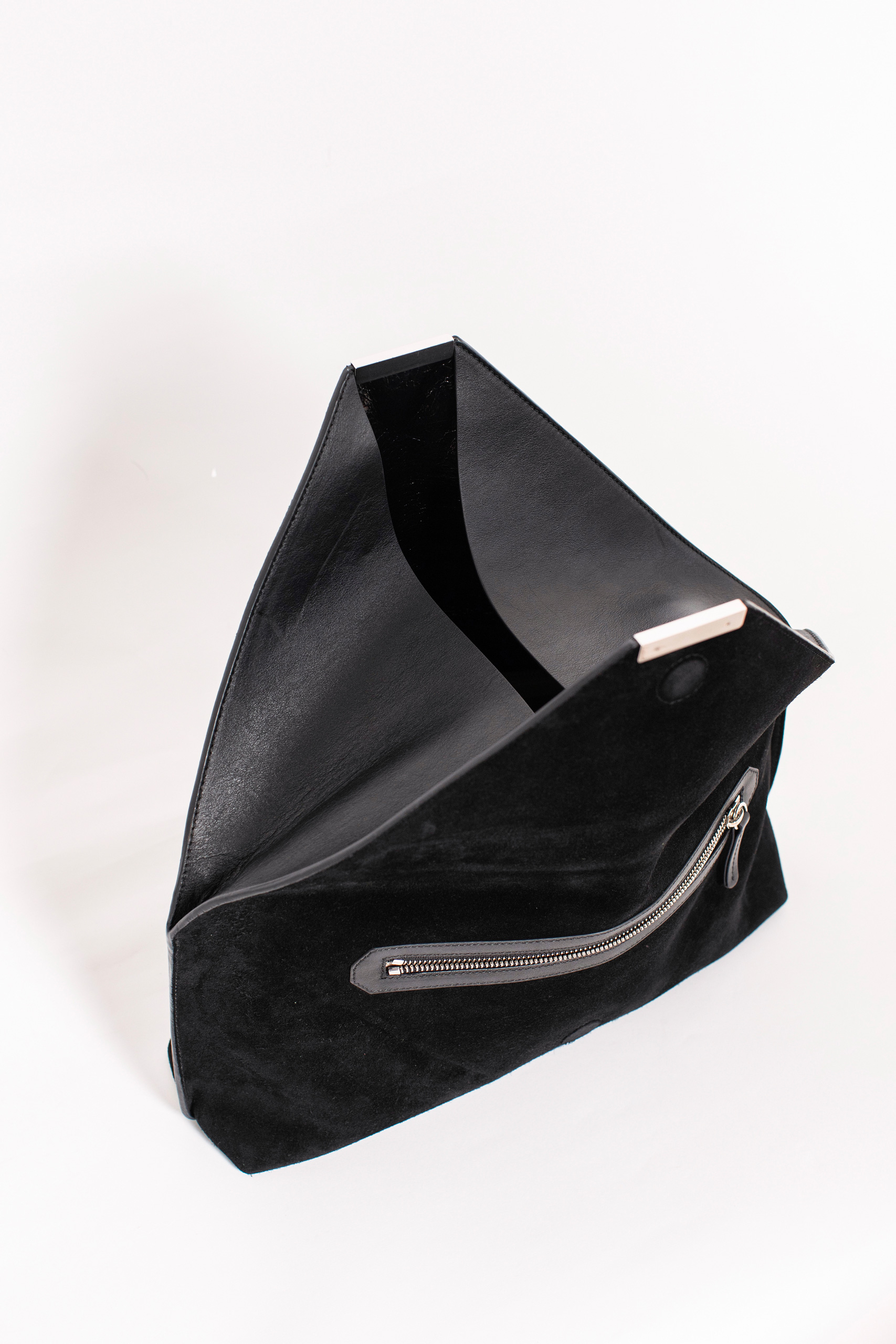 Allure sofisticata e carattere pragmatico per questa borsa a mano dalla silhouette oversize. Il modello, in mix di pellame, presenta linee essenziali e tagli grafici dal design minimalista e una tasca esterna con zip di metallo che la rende pratica ogni giorno.