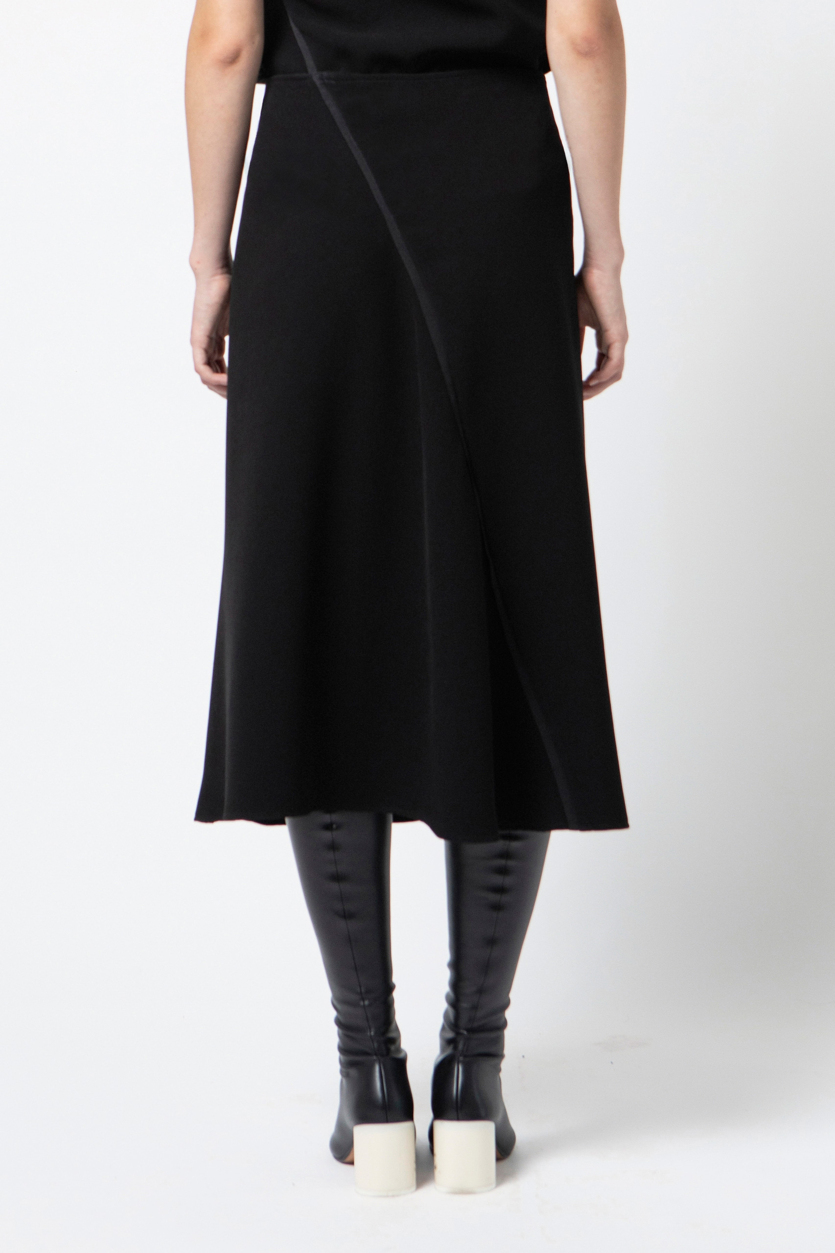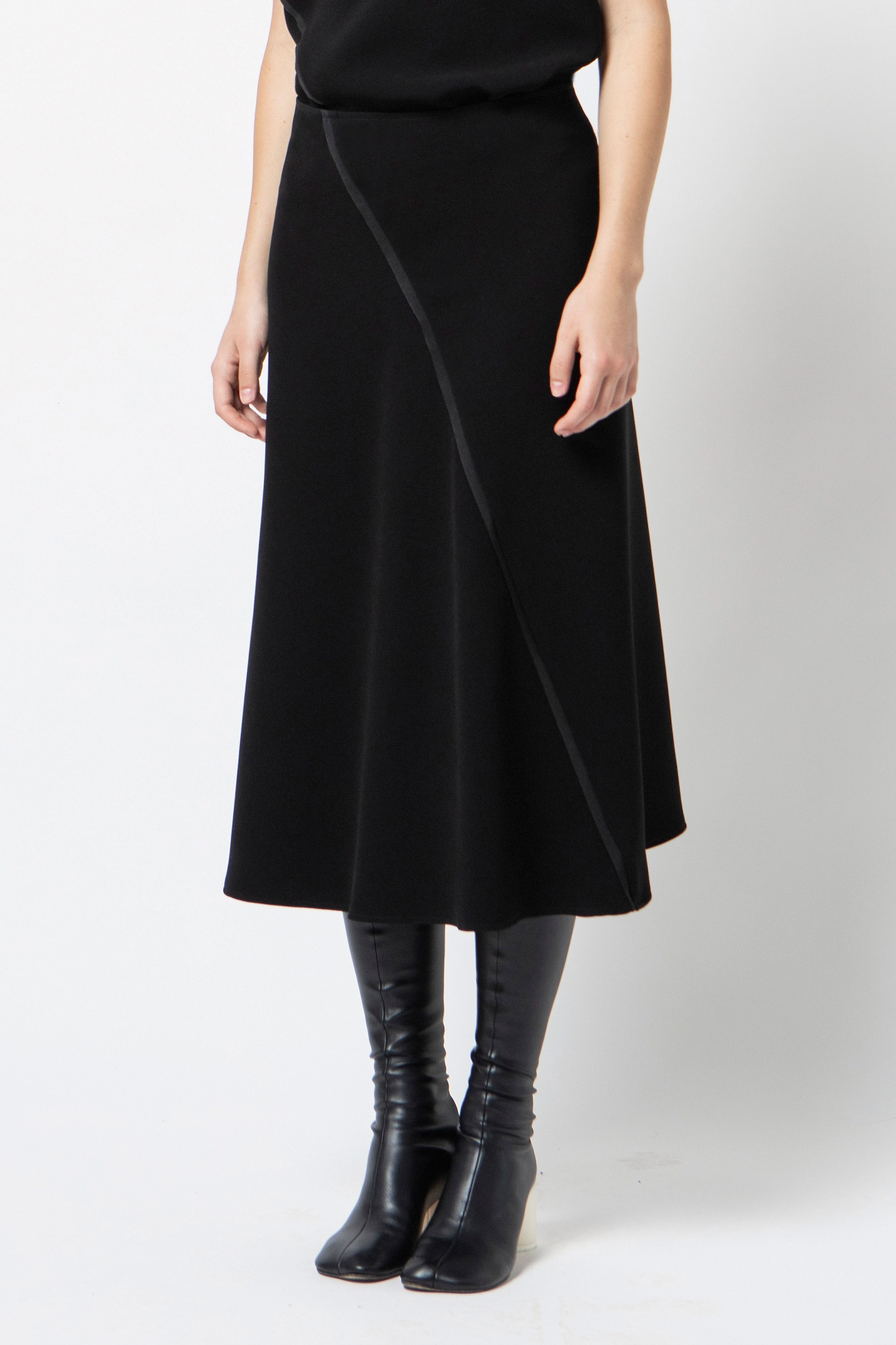 Gonna svasata in cady dall’allure contemporanea caratterizzata da tagli assimetrici e da un design decostruito. Il motivo dell’inserto gros-grain nei tagli aggiunge un tocco di inedita eleganza a questo capo, che è realizzato con attenzione ai dettagli.