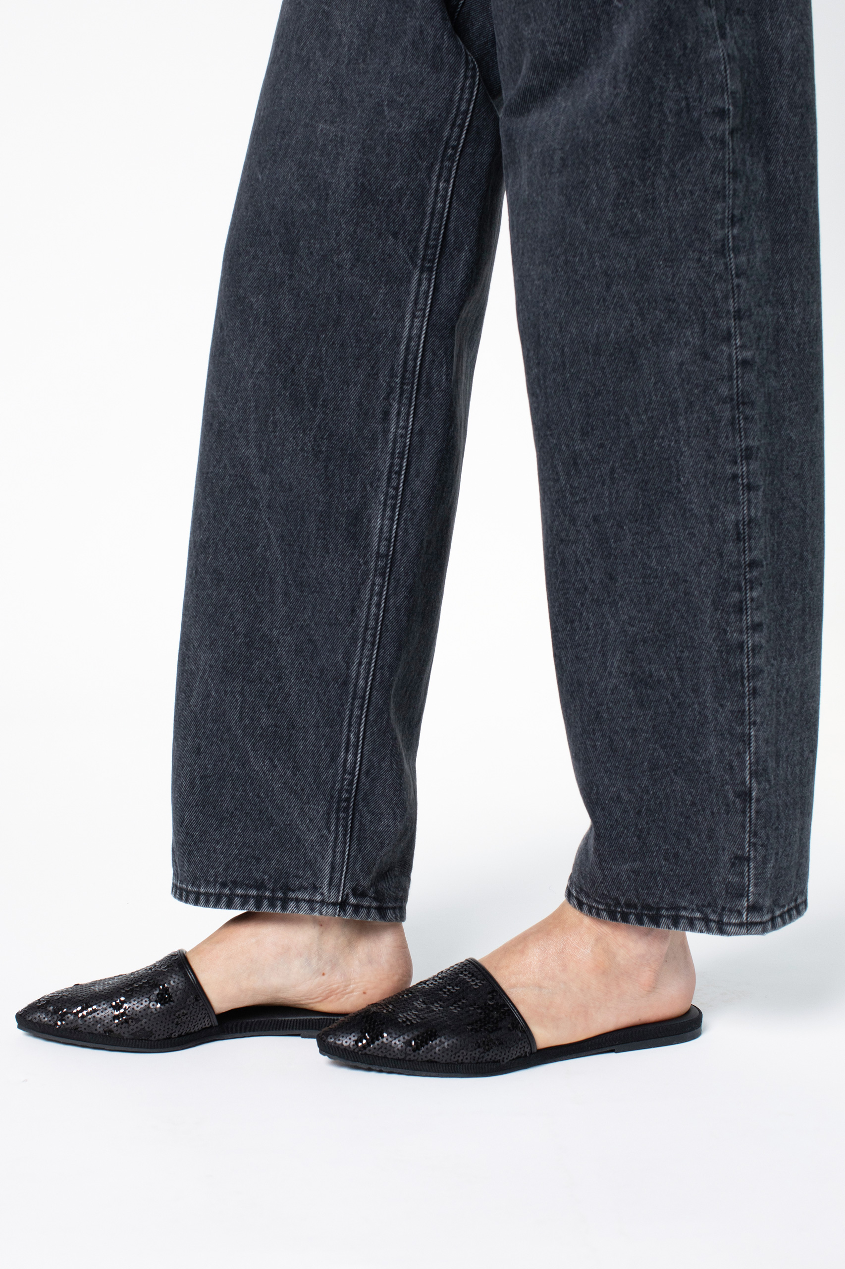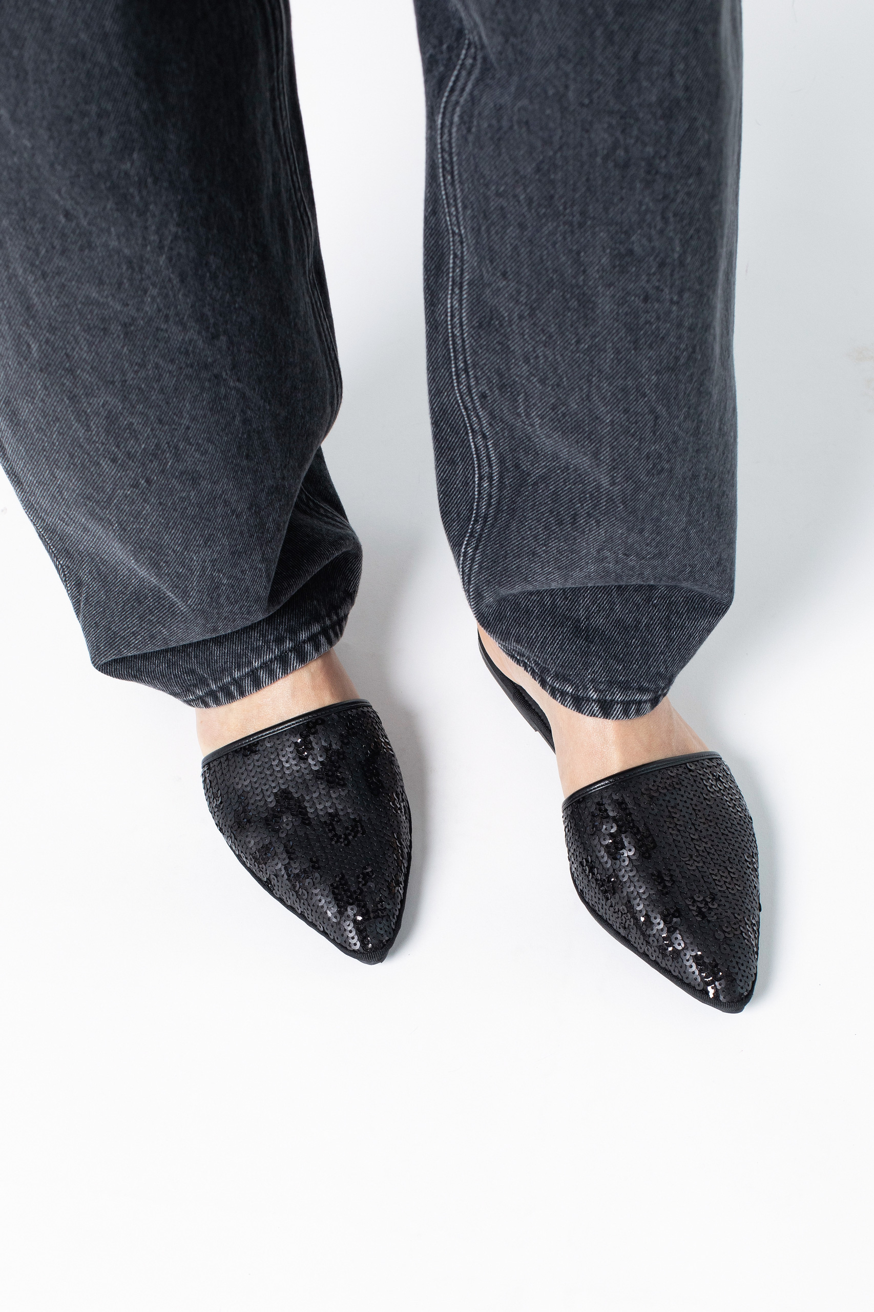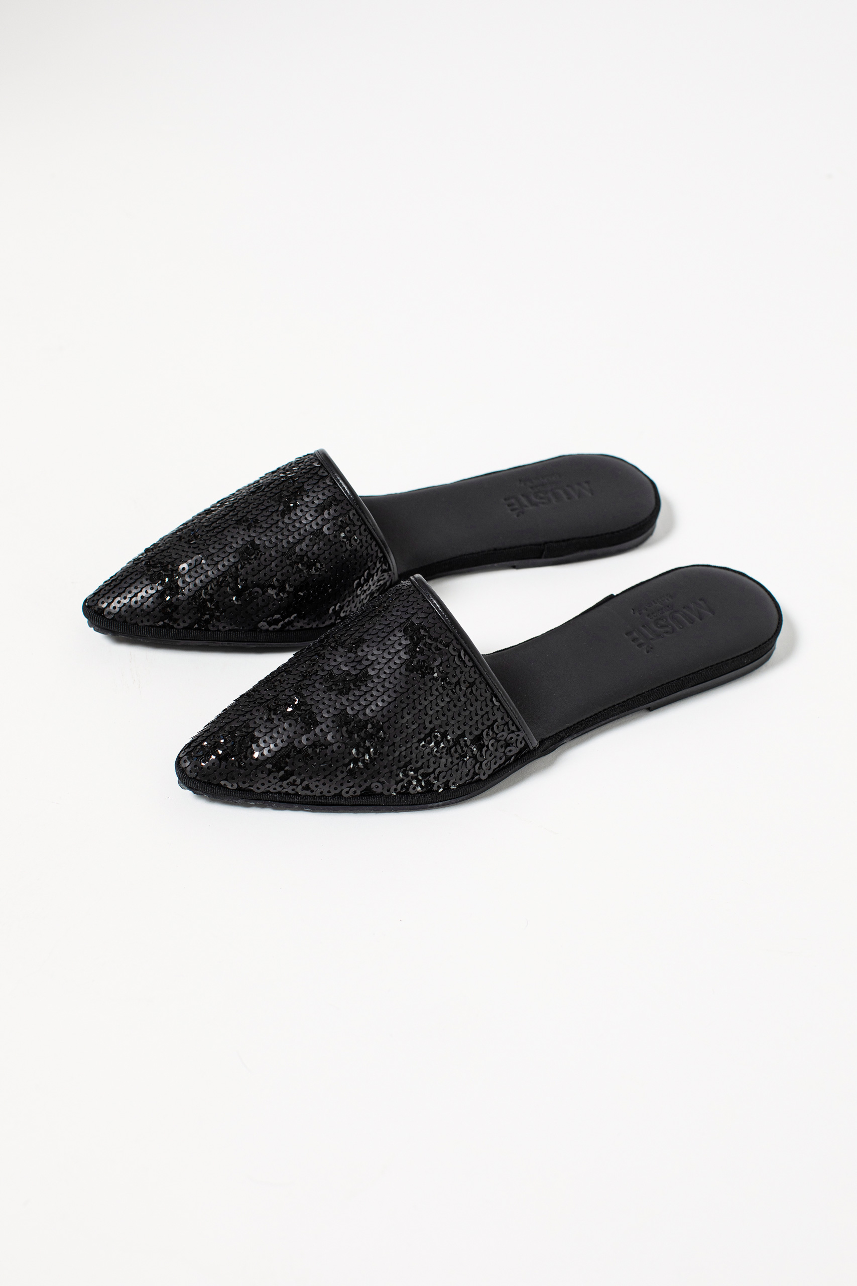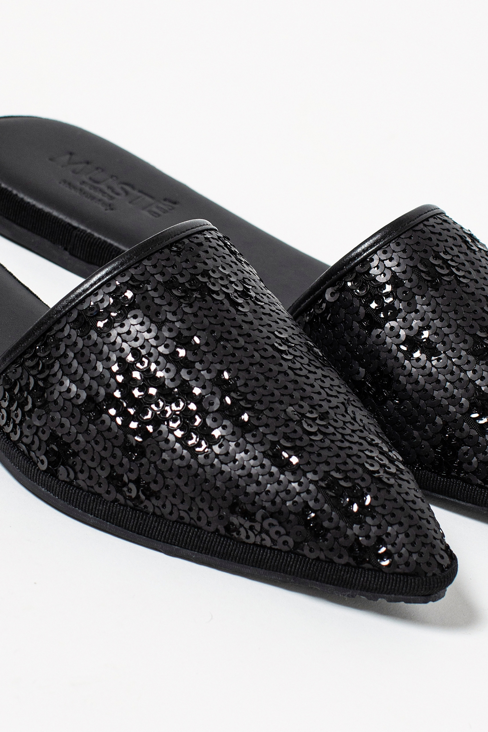• Scarpa bassa tipo mule fatta a mano in pelle e tessuto sequins