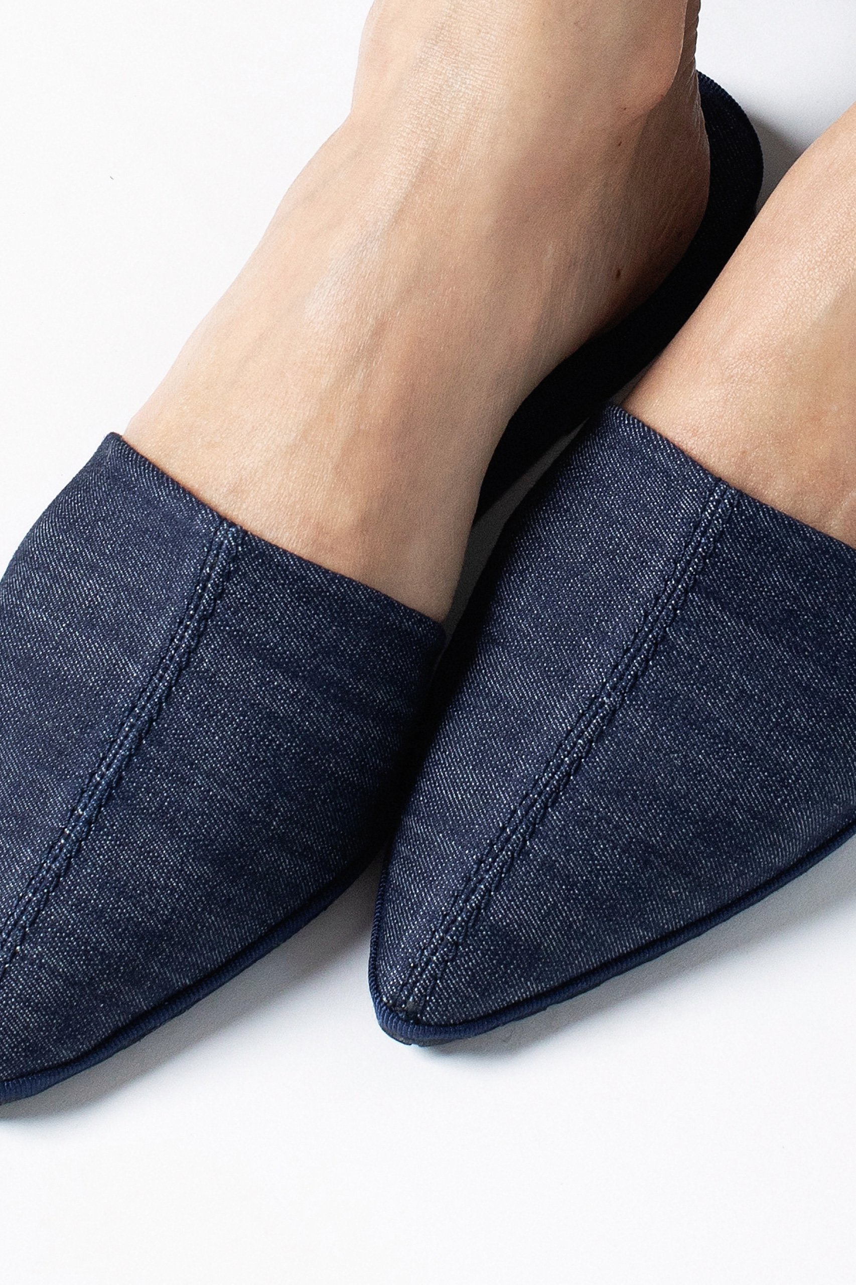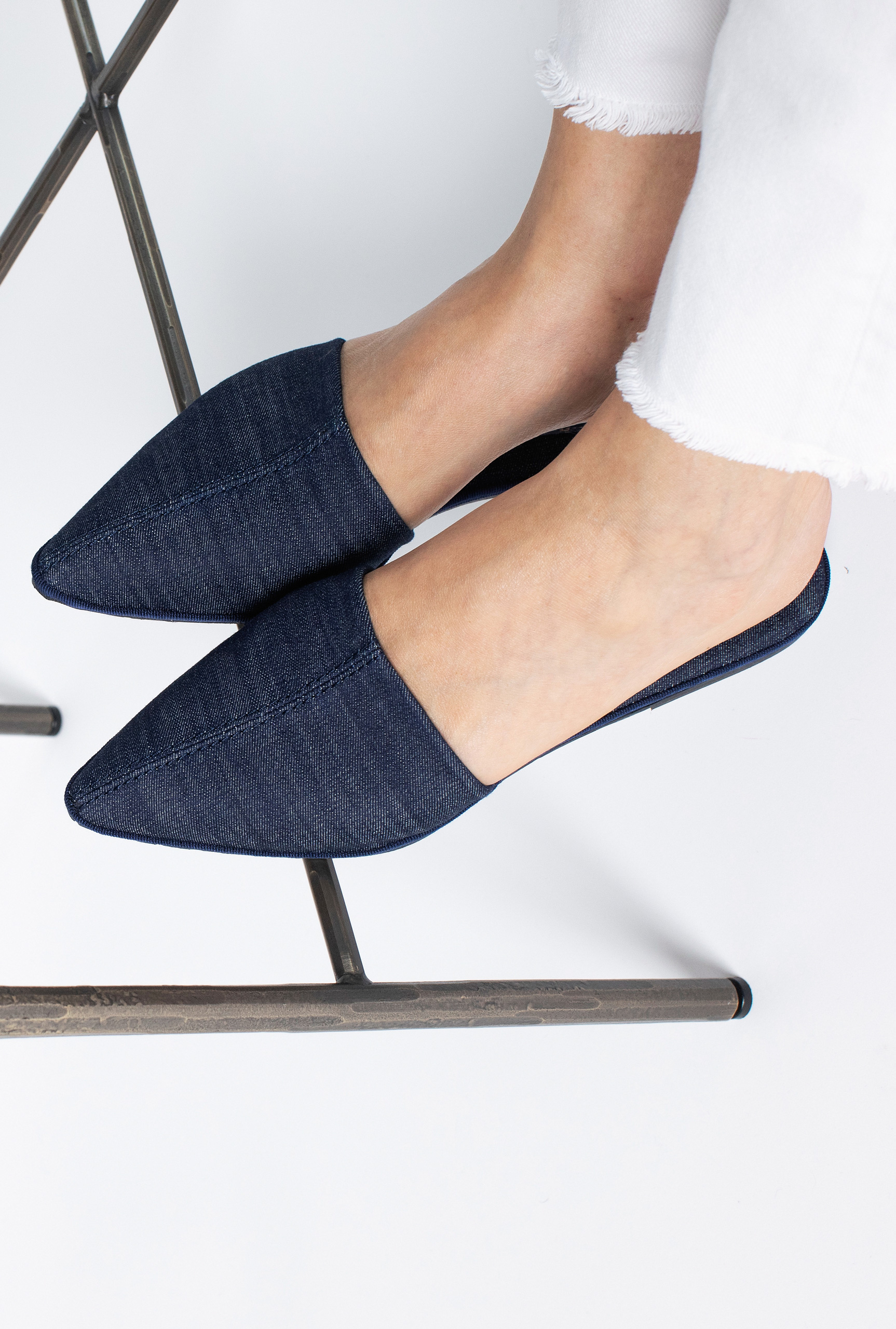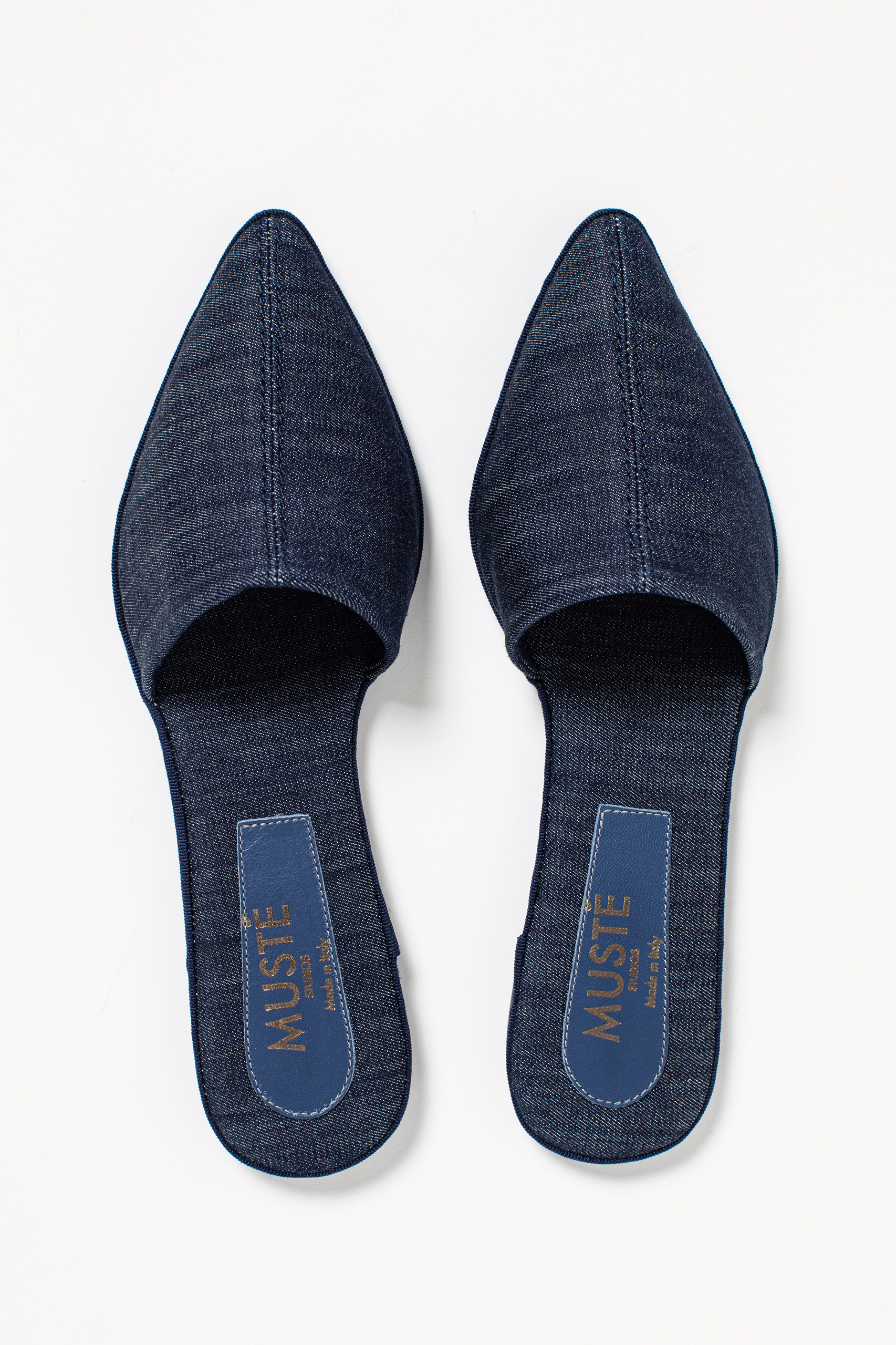 - Scarpa bassa tipo mule fatta a mano interamente in denim 100% cotone