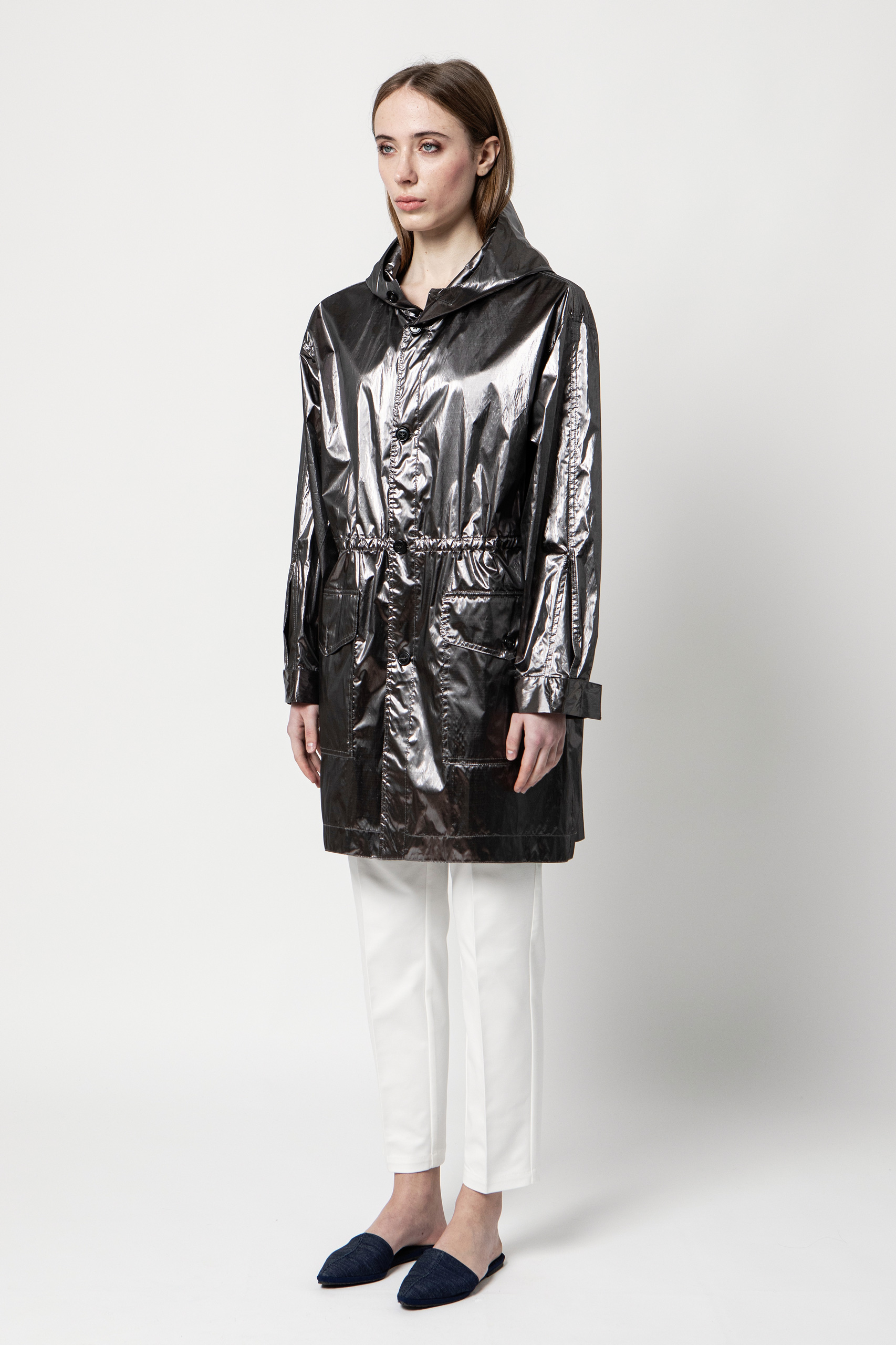 Funzionalità e volumi sofisticati convergono in questo parka in tessuto impermeabile leggero e oversize dal finish stropicciato. Il trattamento idrorepellente lo rende tecnico e funzionale. La coulisse regolabile in vita completa il design contemporaneo e versatile. Un capo in tessuto ultraleggero da tenere anche nelle borse più piccole per affrontare gli improvvisi temporali estivi.