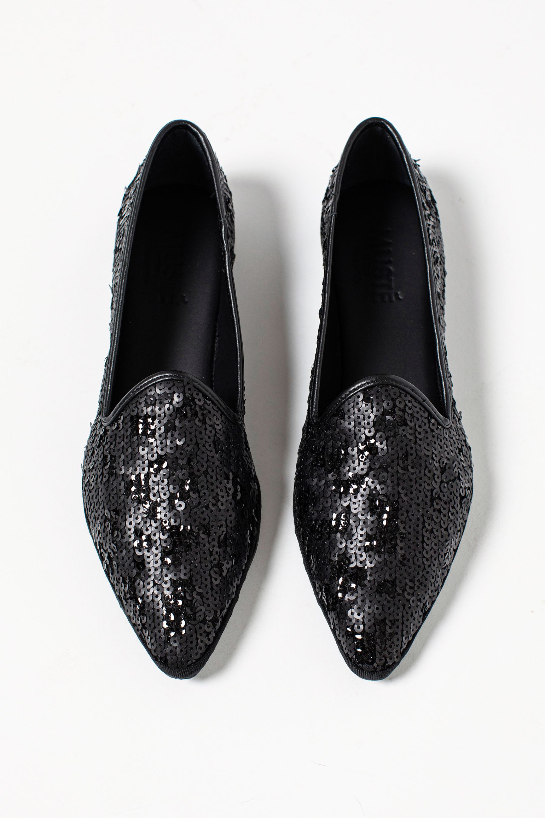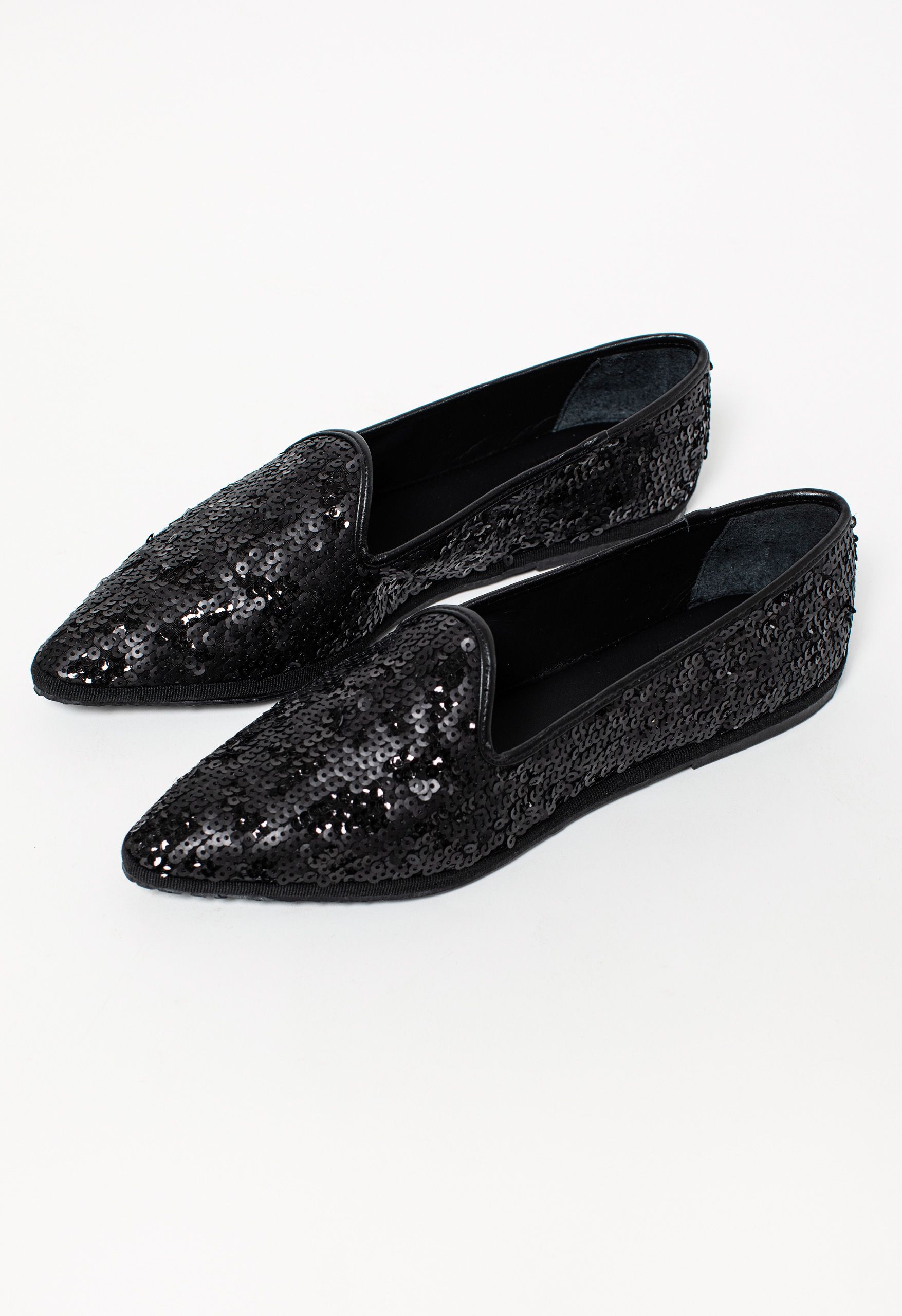 - Scarpa bassa tipo friulana fatta a mano in pelle e tomaia in tessuto sequins