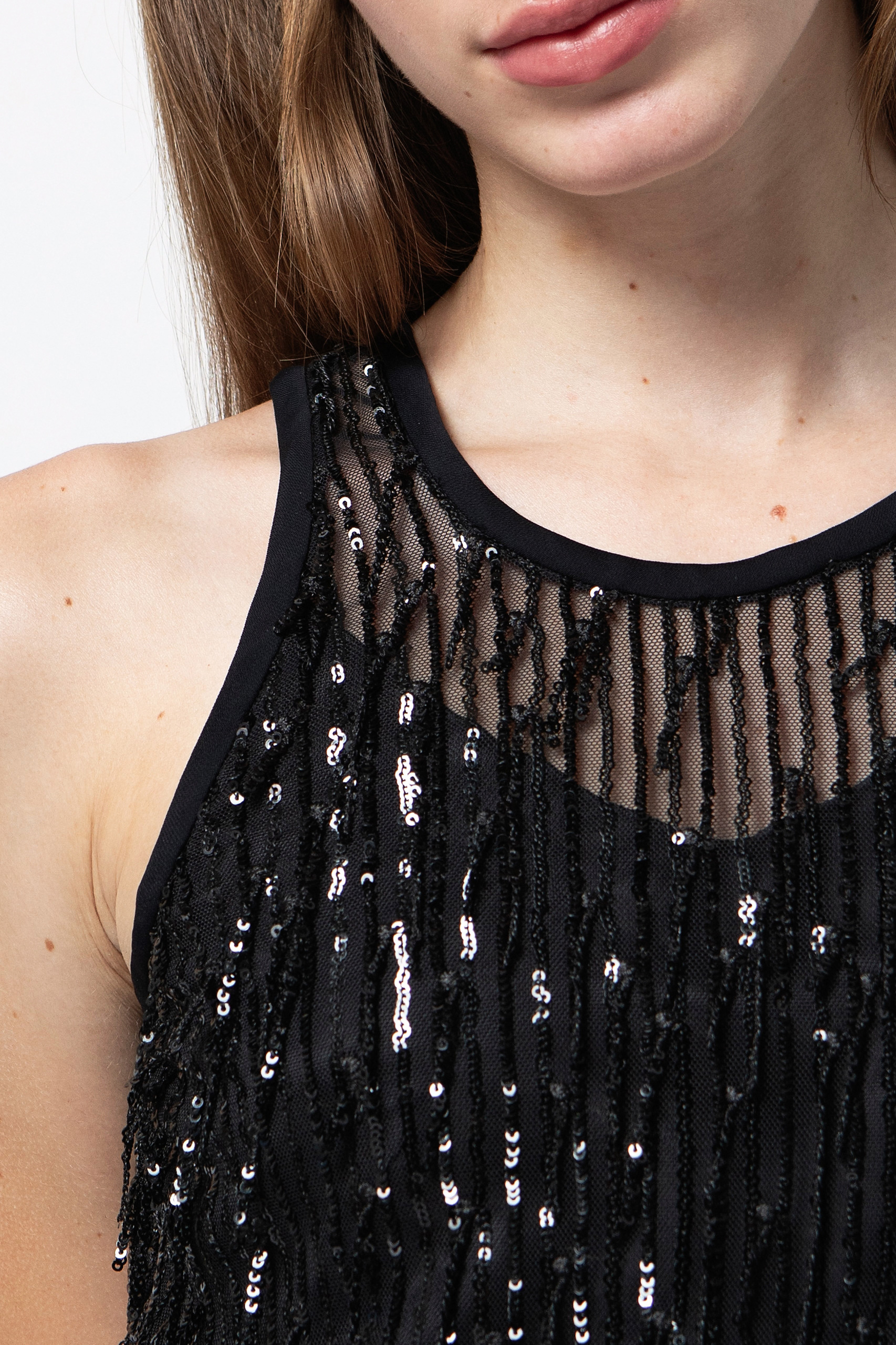 Top in tessuto paillettes nero