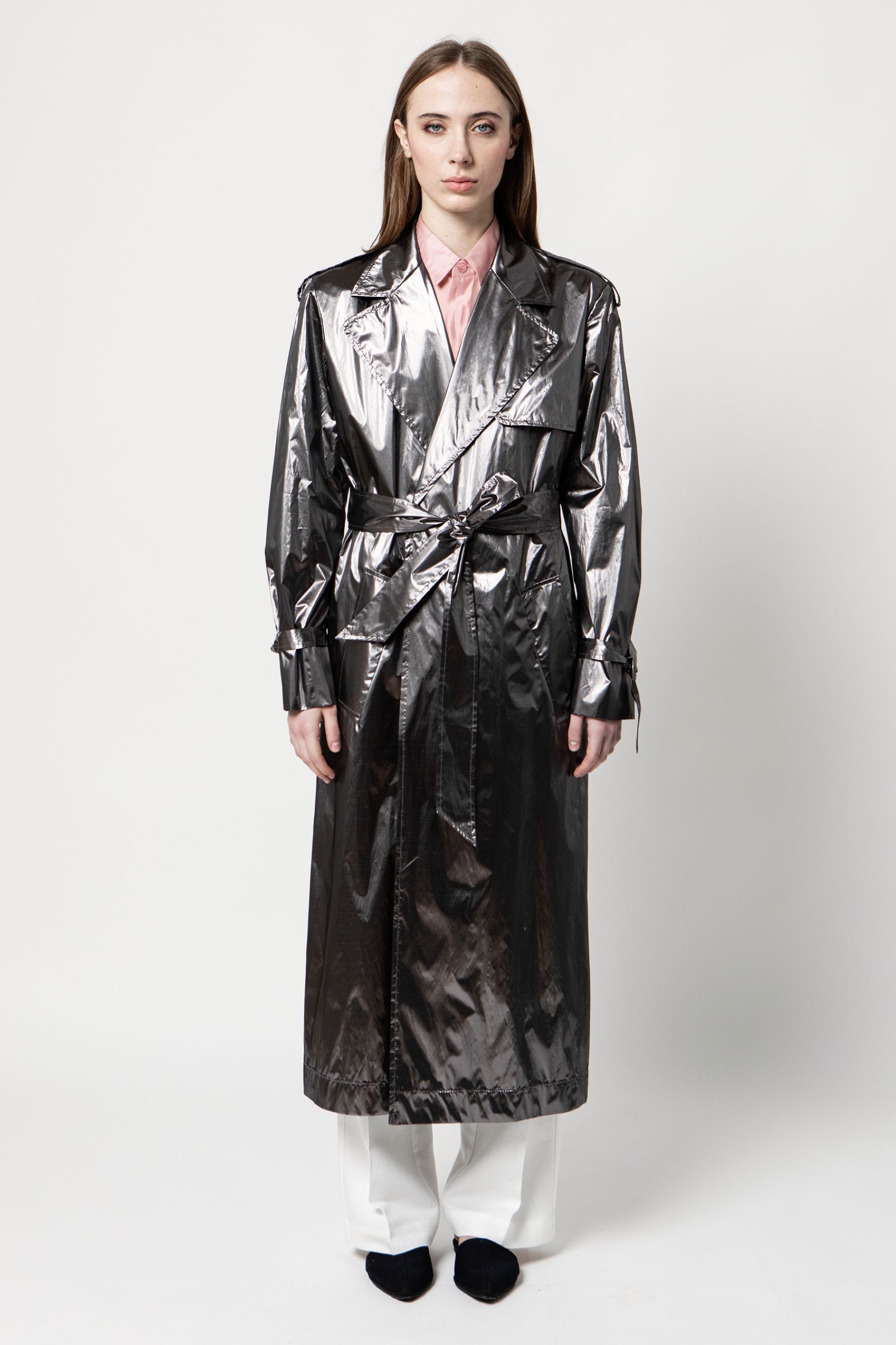 Funzionalità e volumi sofisticati convergono in questo trench in tessuto impermeabile leggero. Il trattamento idrorepellente lo rende tecnico e funzionale. La cintura in vita completa il design contemporaneo e versatile. Un capo in tessuto ultraleggero da tenere anche nelle borse più piccole per affrontare gli improvvisi temporali estivi.