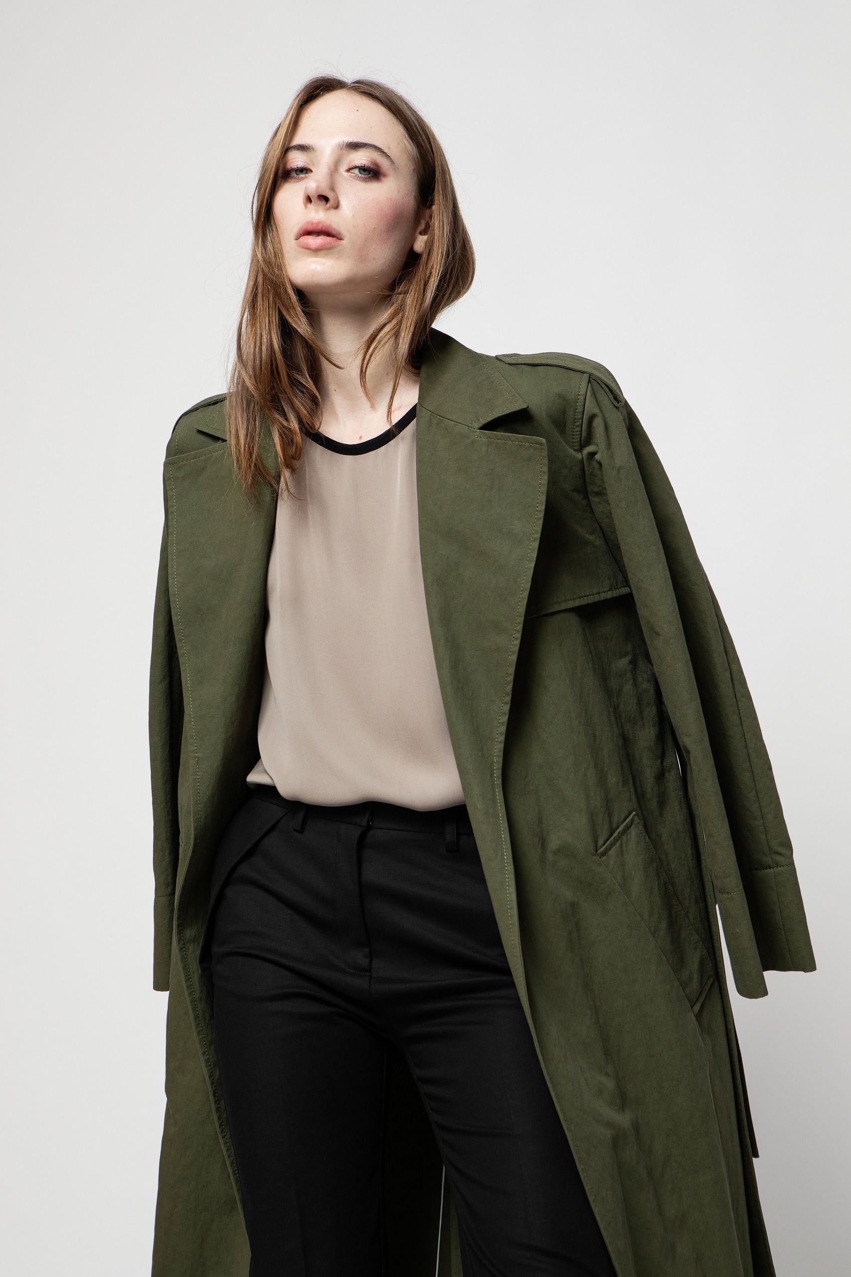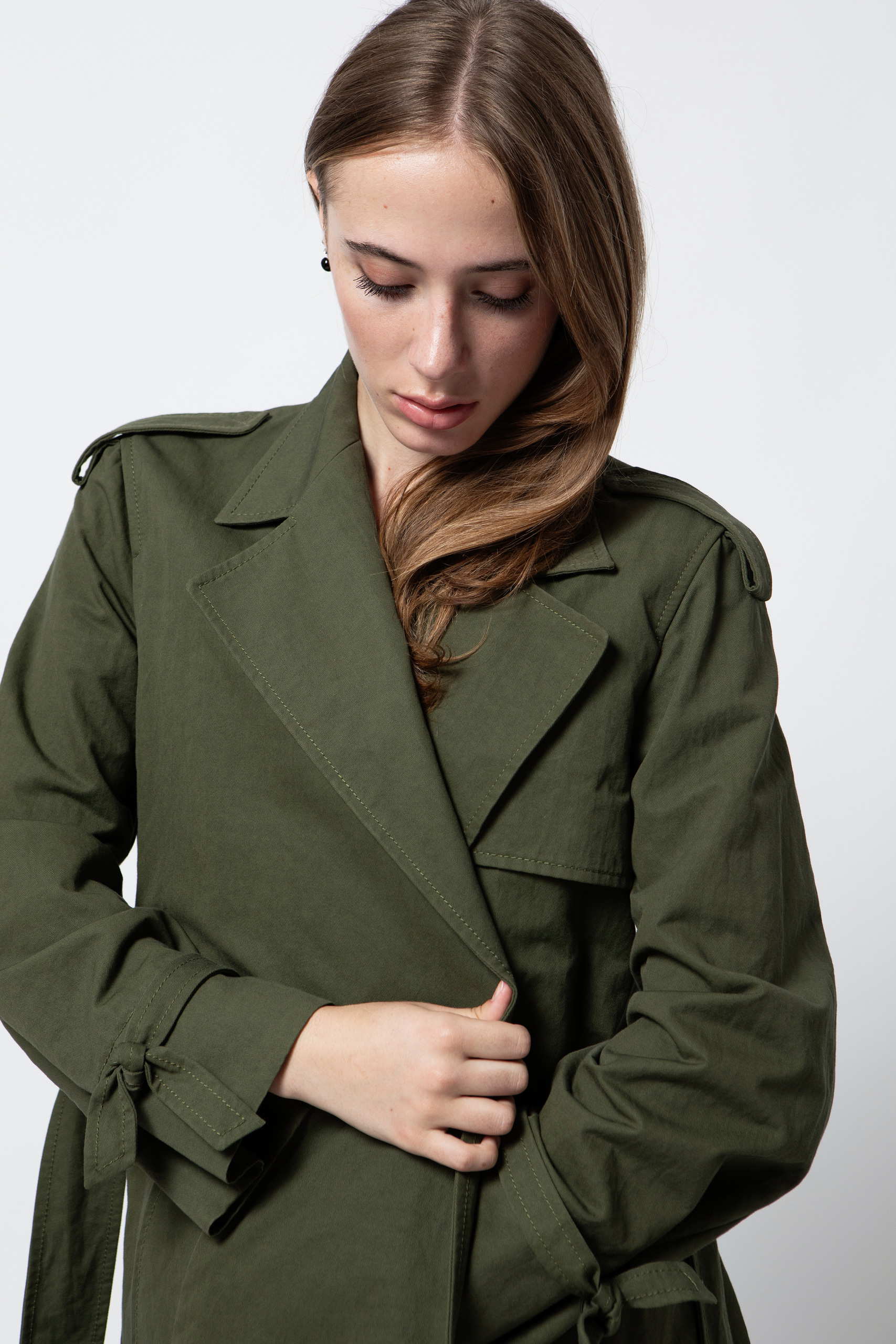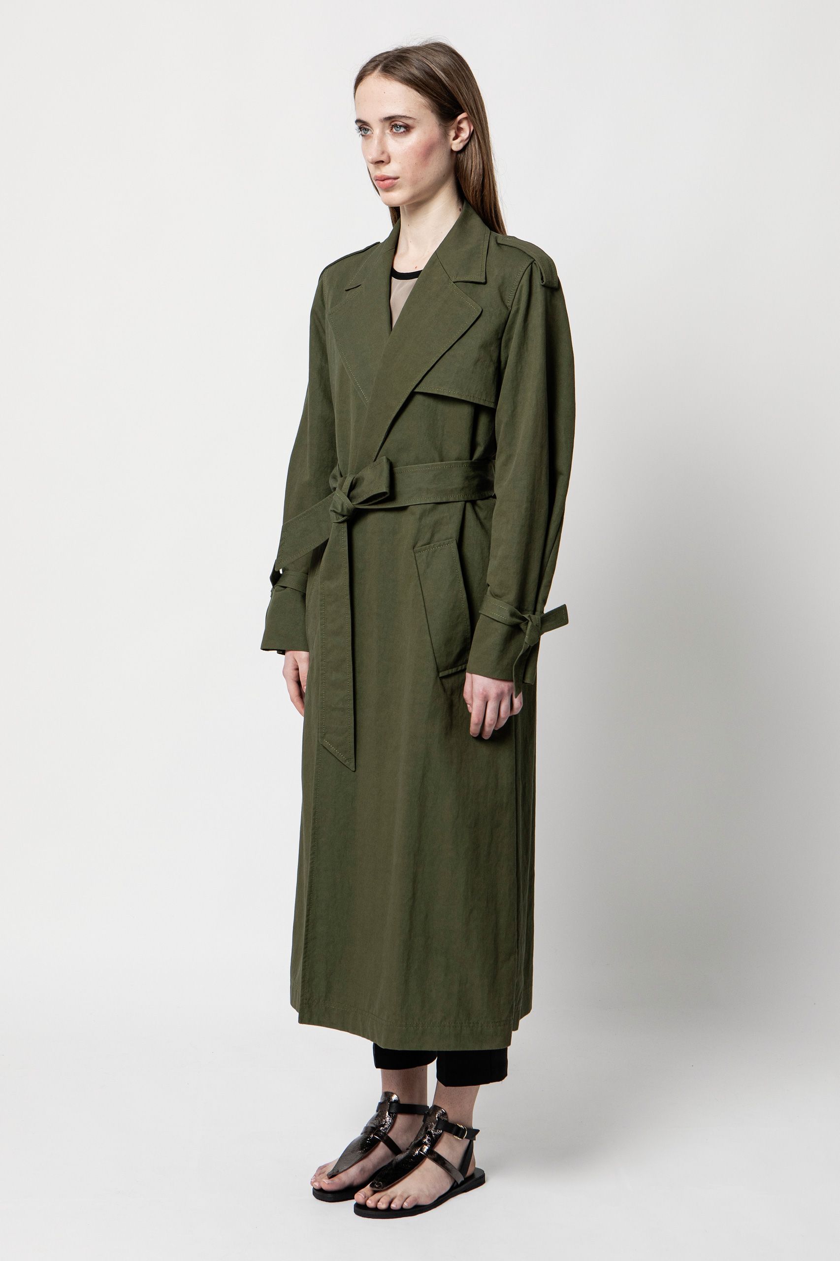 Questo trench in tessuto tecnico di cotone presenta una silhouette d’ispirazione maschile, reinterpretata con dettagli ricercati e contemporanei. La cintura con il doppio passante posteriore arricchisce il modello dalle linee ampie, caratterizzato da revers classico e da cinturini a laccio sulle maniche. Un capo intramontabile, in un tessuto speciale, da tenere sempre nel guardaroba e tramandare.