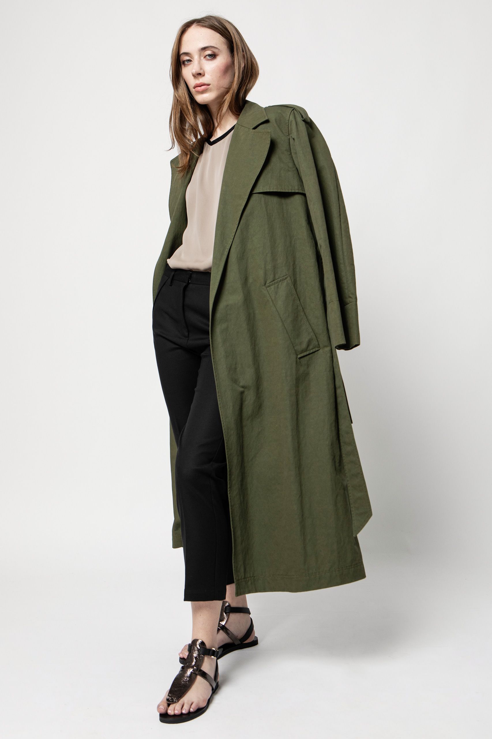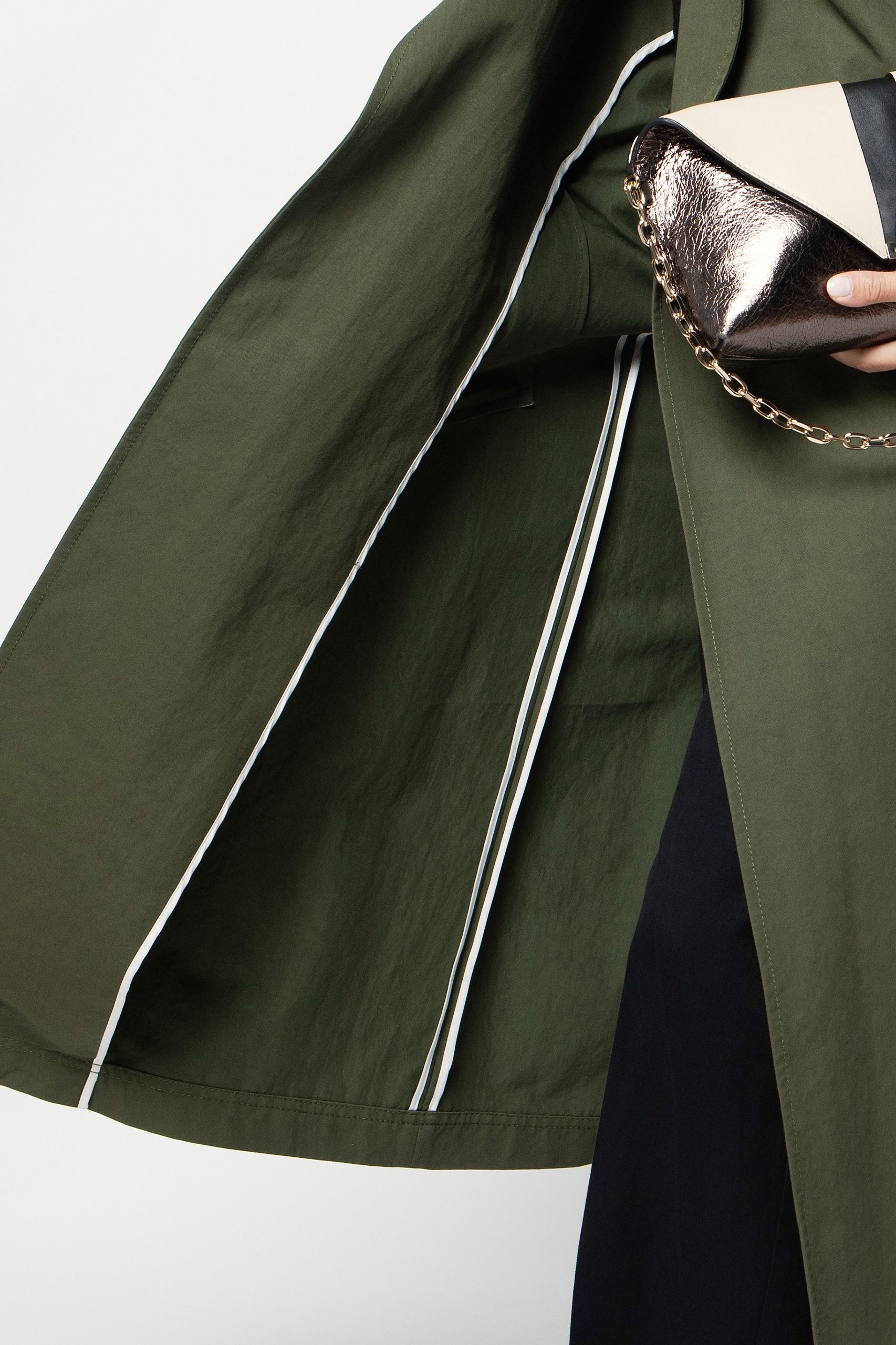 • trench in tessuto tecnico di cotone sfoderato